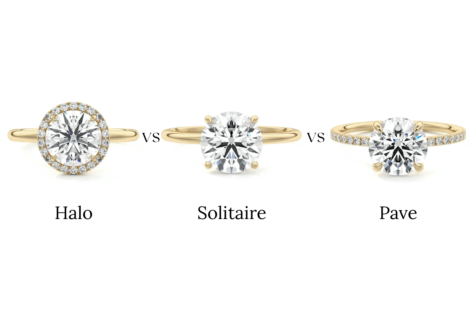 When deciding between Solitaire Engagement Rings, Halo Engagement Rings, or Pavé Engagement Rings, consider the following factors: