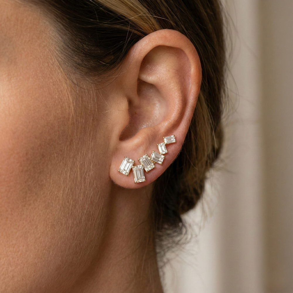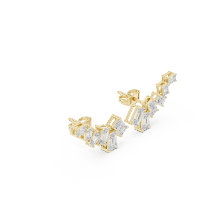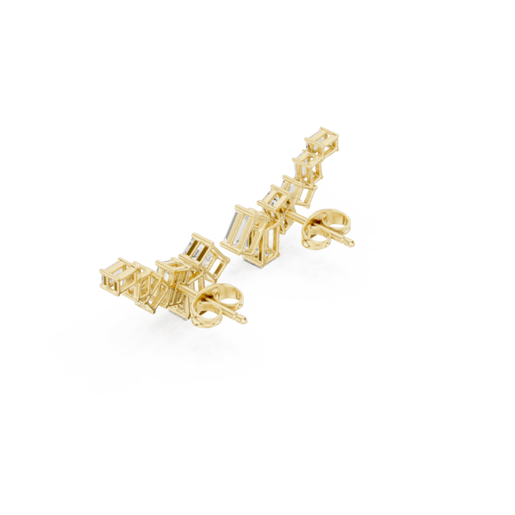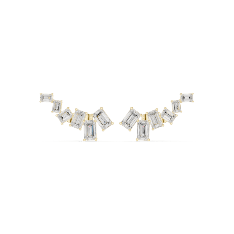 Abay by Jewel Nests showcases emerald cut lab-grown diamonds totaling approximately 2.50 carats, with bright E/F color and VS-VVS clarity for dramatic step-cut brilliance in every prong-set stone. These fine jewelry diamond earrings create a sophisticated, elongated silhouette perfect for high-impact styling, available in 14K and 18K solid Yellow Gold, White Gold, or Rose Gold to suit any wardrobe.