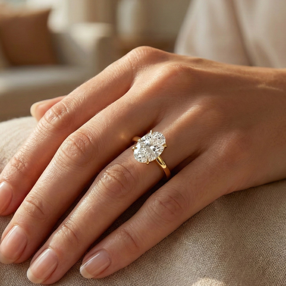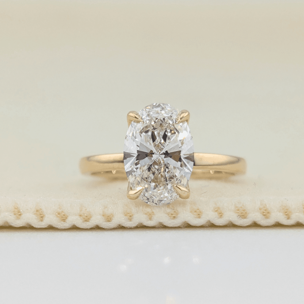Barcelona Luxe – Oval Cut Lab Grown Diamond Hidden Halo Engagement Ring with Tulip Prongs & Euro Shank in 14K & 18K Gold | Jewel Nests