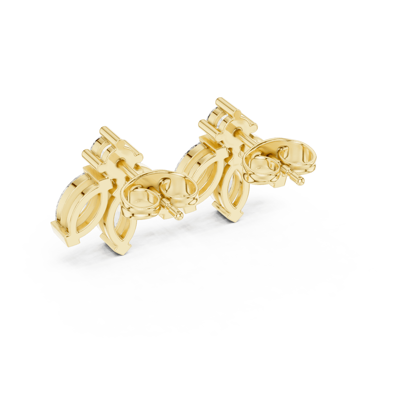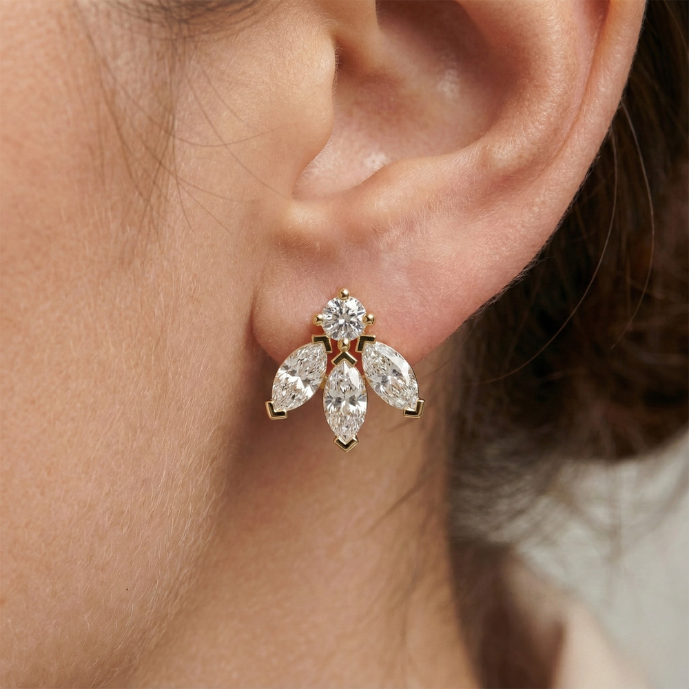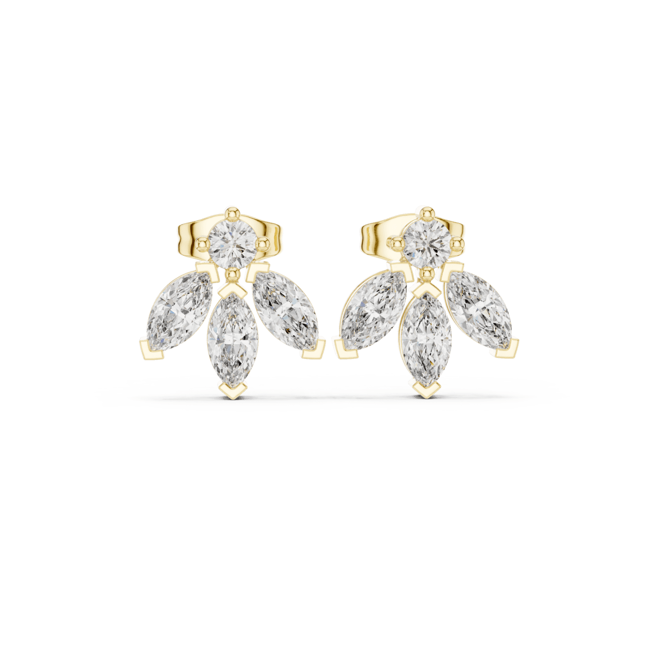 Dembia by Jewel Nests showcases three marquise cut lab-grown diamonds totaling approximately 1.30 carats, with bright E/F color and VS-VVS clarity, securely set in distinctive V-prong settings for dramatic sparkle and movement in premium fine jewelry diamond earrings. These marquise & Round Diamond Earrings and Marquise Cut Earrings are available in 14K and 18K solid Yellow Gold, White Gold, or Rose Gold, offering romantic sophistication perfect for evening wear, bridal looks, or confident everyday statements.