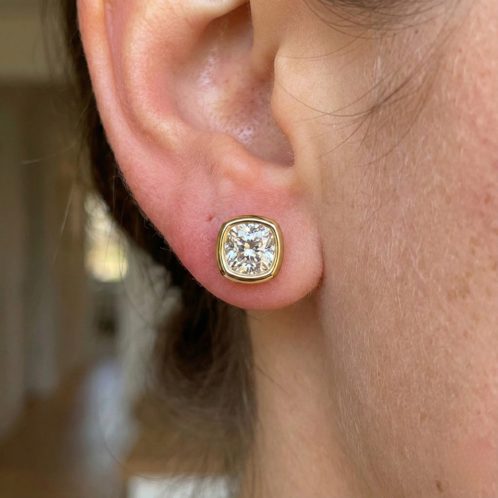 Doina – Cushion Cut Lab Grown Diamond Bezel Set Stud Earring