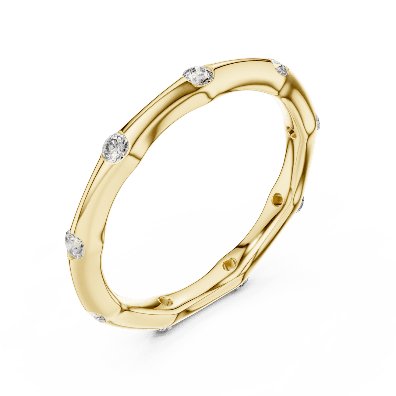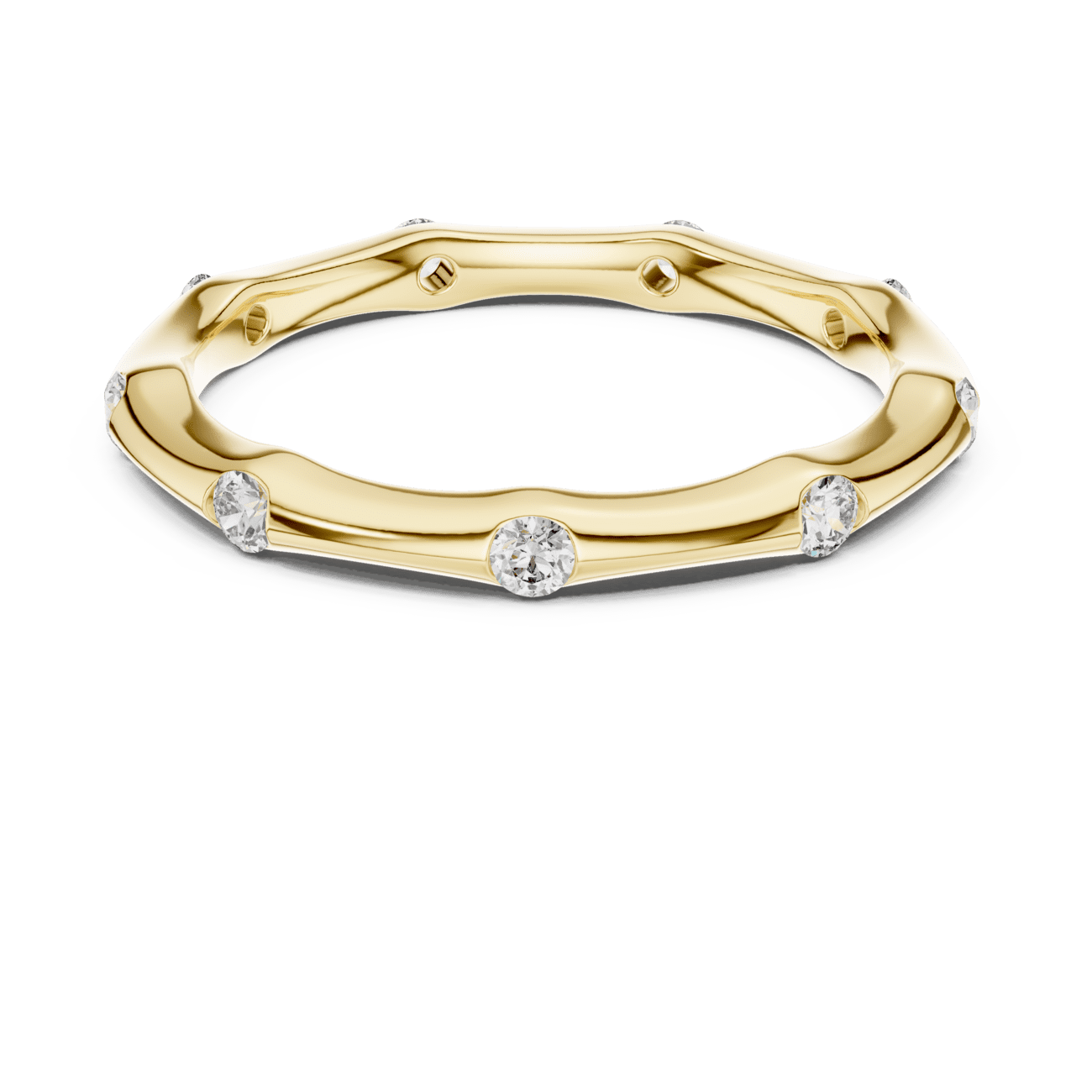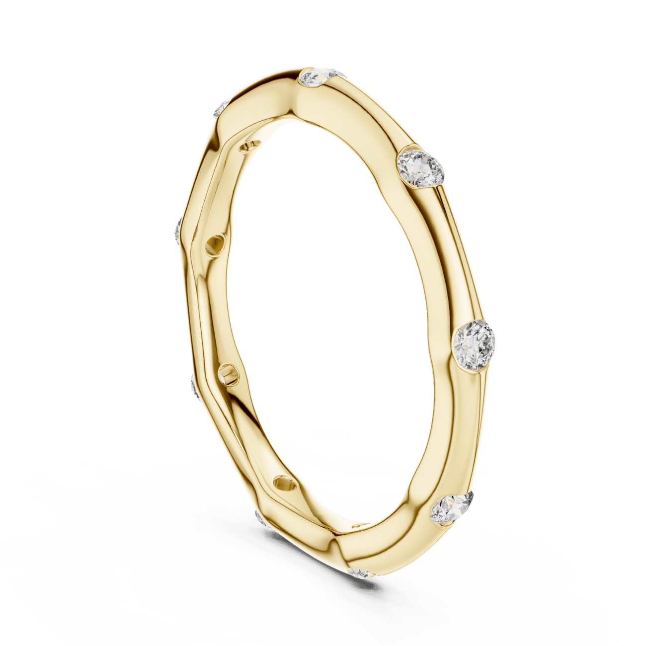 Iris – Bamboo Style Stackable Wedding Ring with Round Brilliant Cut Diamond Accents in 14K Solid Gold | Jewel Nests