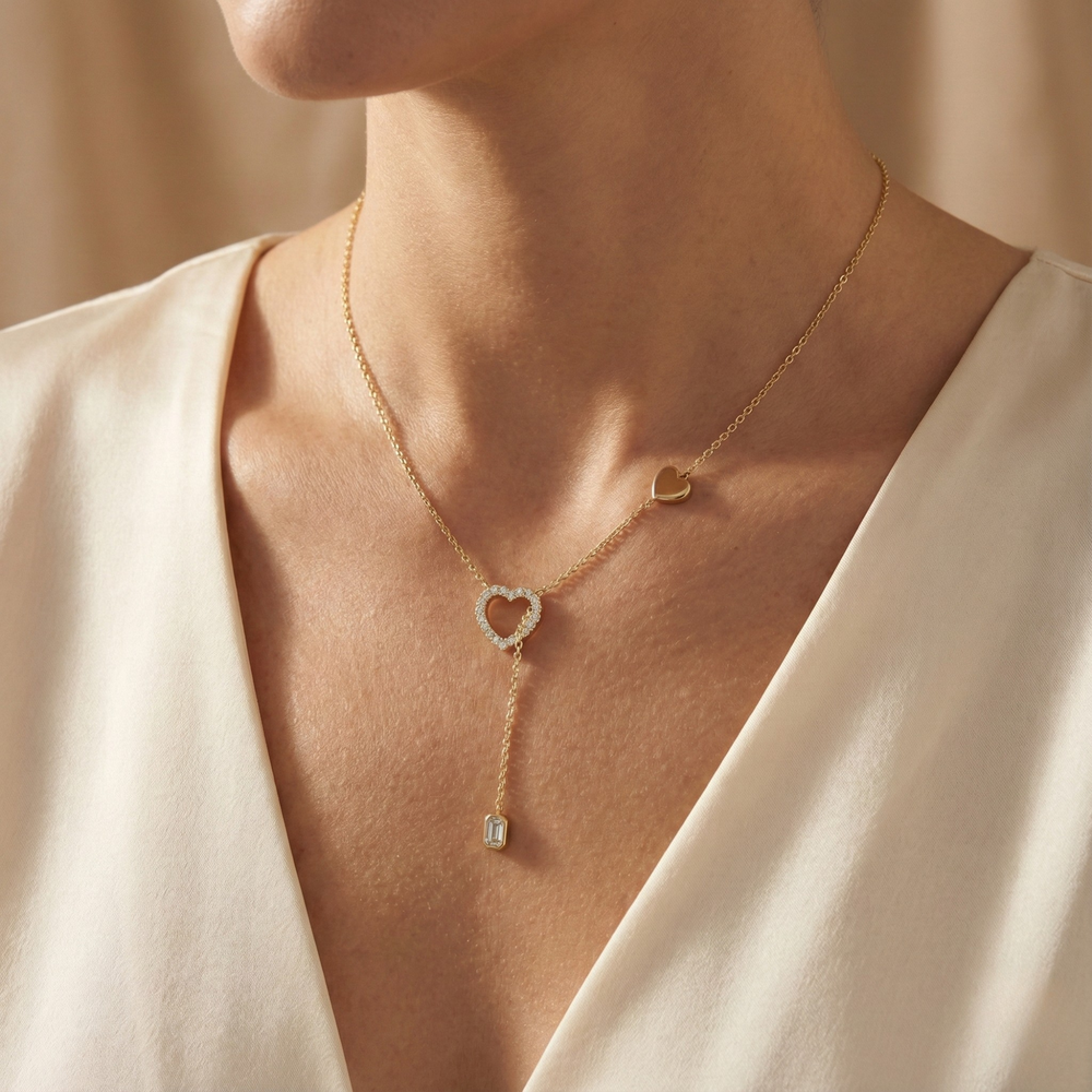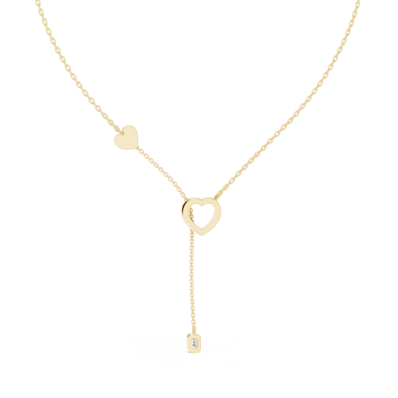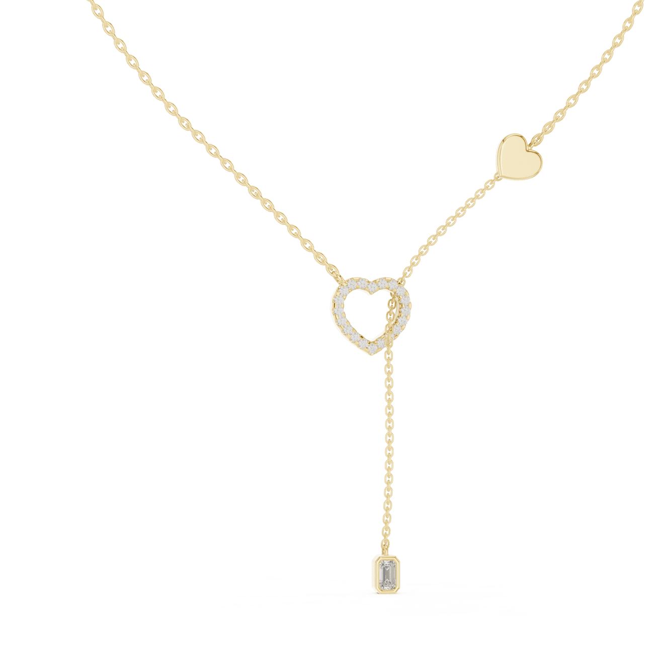 Jane – Emerald Cut & Heart Diamond Drop Pendant Necklace in 14K & 18K Solid Gold | Jewel Nests Canada