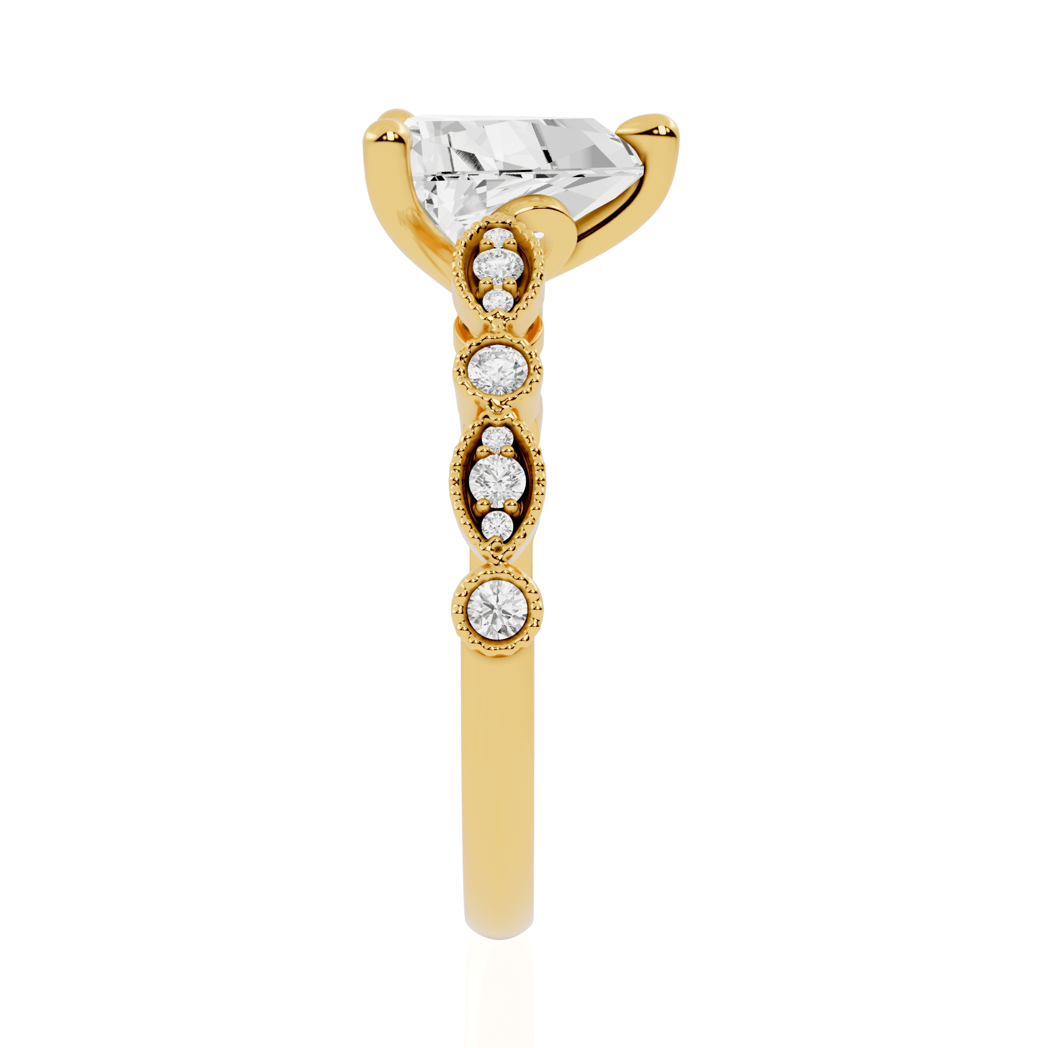 Crafted in solid gold, its claw prong (eagle claw) setting ensures maximum security and brilliance, while the slim diamond-adorned band (2.0mm) offers comfort with refined beauty. Perfect for those seeking a unique engagement ring with sustainable luxury, Jersey Drift is a true symbol of love, artistry, and ethical craftsmanship.