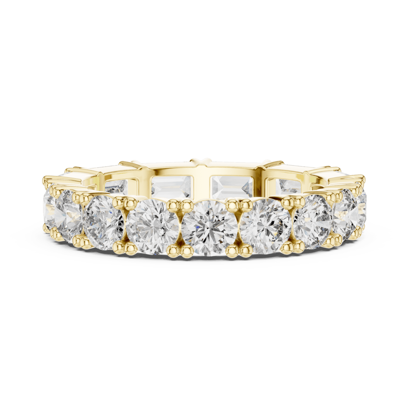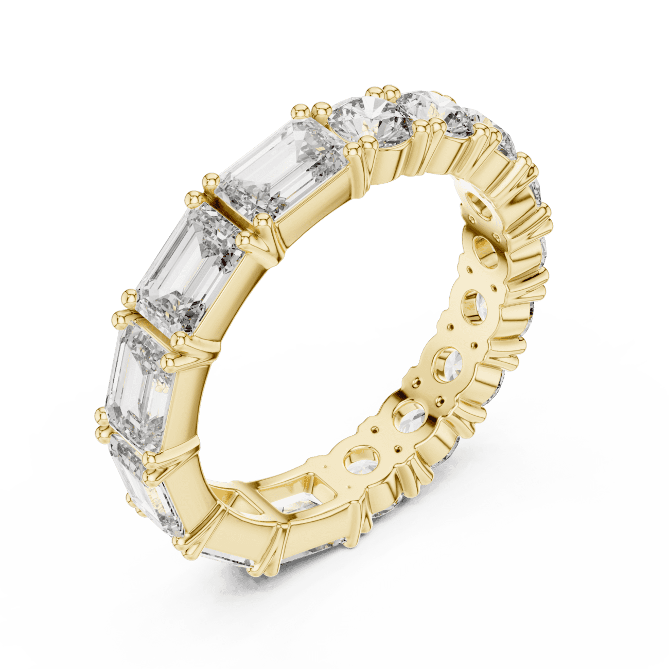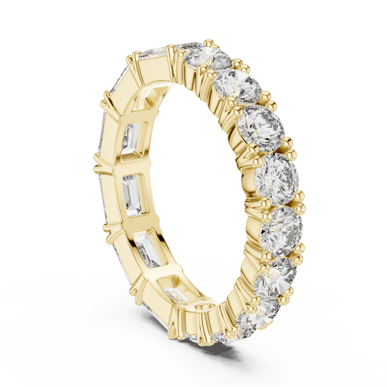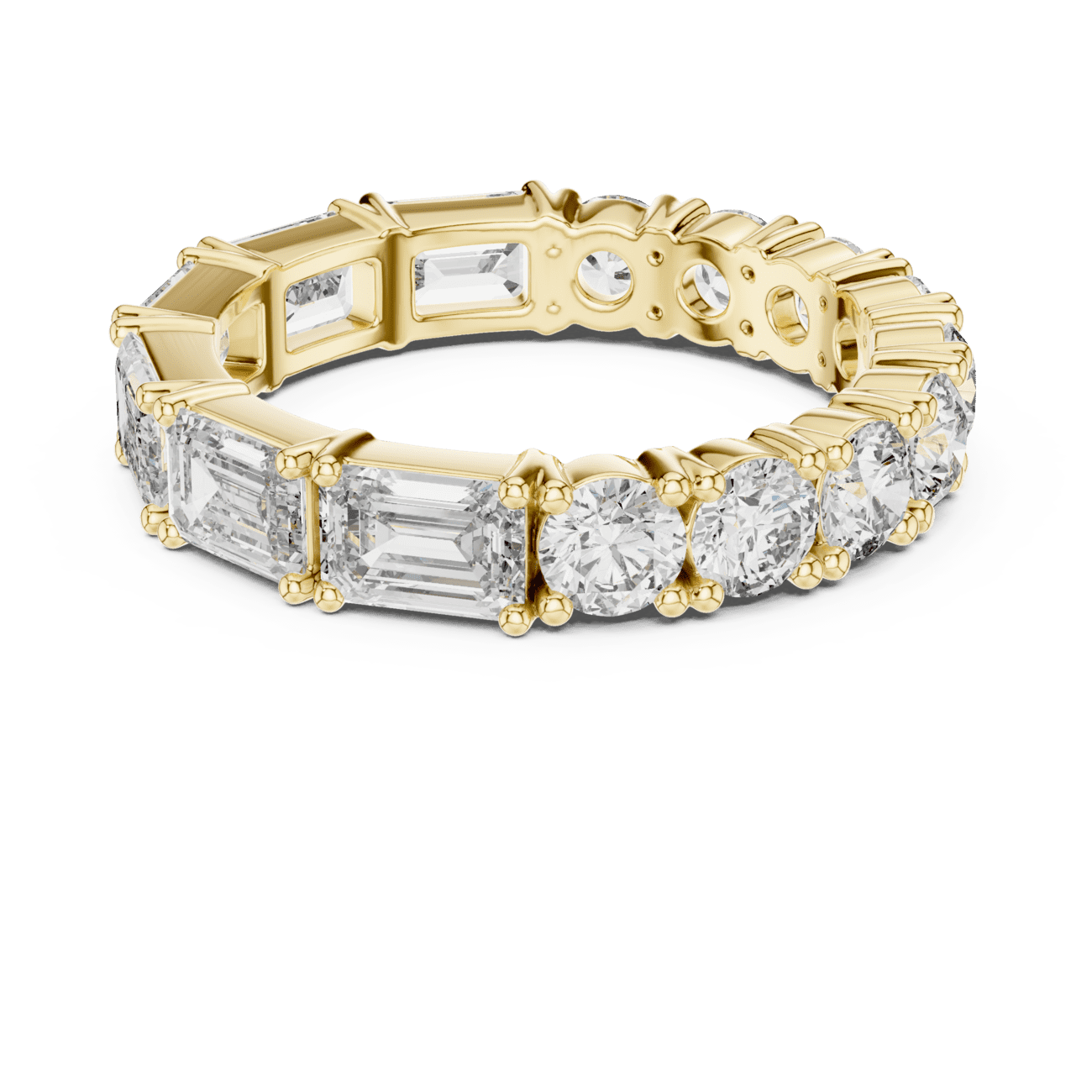 Embrace timeless romance with Lavya, a mixed emerald and round cut lab-grown diamond eternity band by Jewel Nests. Featuring a stunning combination of emerald cut and round brilliant cut lab-grown diamonds, this full eternity band delivers captivating sparkle from every angle.