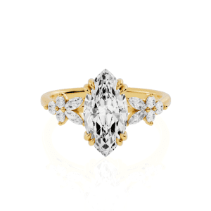 Miami Brilliance – Marquise Cut Lab-Grown Diamond Engagement Ring with Side Marquise & Round Diamonds