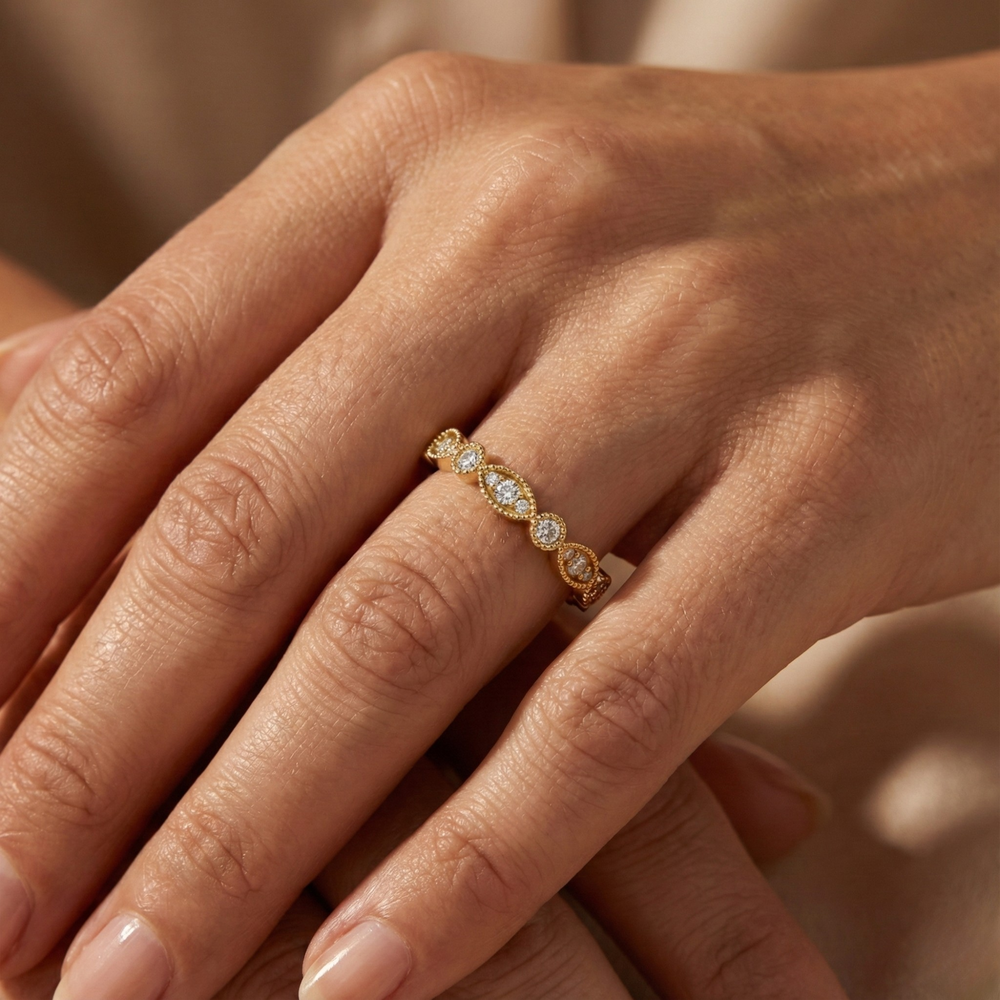 Perfect for brides seeking a vintage-inspired wedding ring with modern ethical craftsmanship, Opal combines timeless beauty, intricate detailing, and sustainable luxury. Ideal as an engagement ring or wedding band, this piece symbolizes everlasting love with a touch of refined artistry.