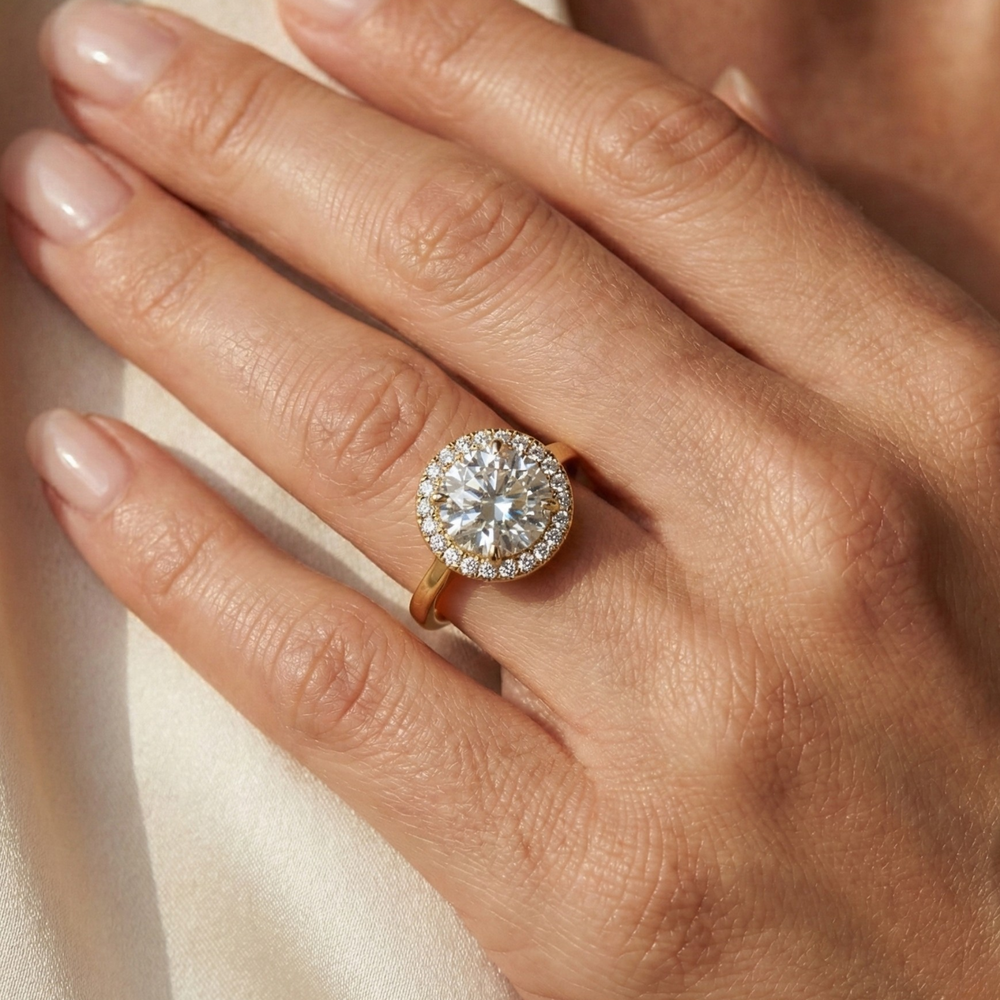 Petra Jewel – Halo Lab-Grown Diamond Solitaire Engagement Ring with Cathedral Setting