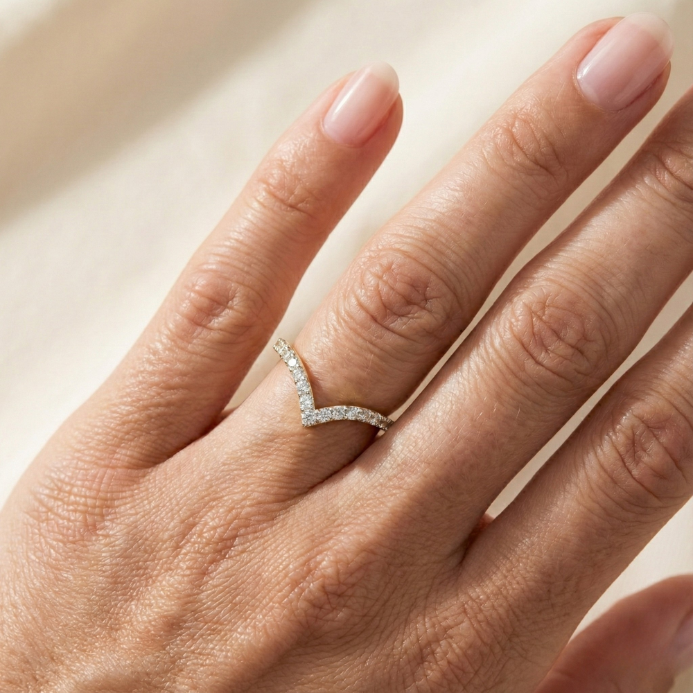 With its 2.0 mm width and 0.60–0.70 TCW, Sharvya is an ideal curved wedding band, anniversary ring, or stackable eternity band for those who value timeless elegance and sustainable luxury.