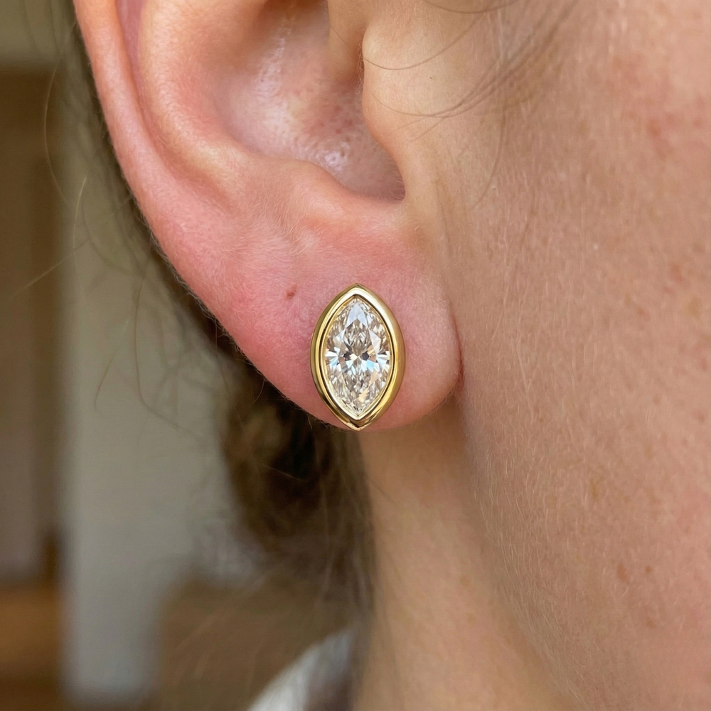 Solina – Marquise Cut Lab Grown Diamond Bezel Set Stud Earring