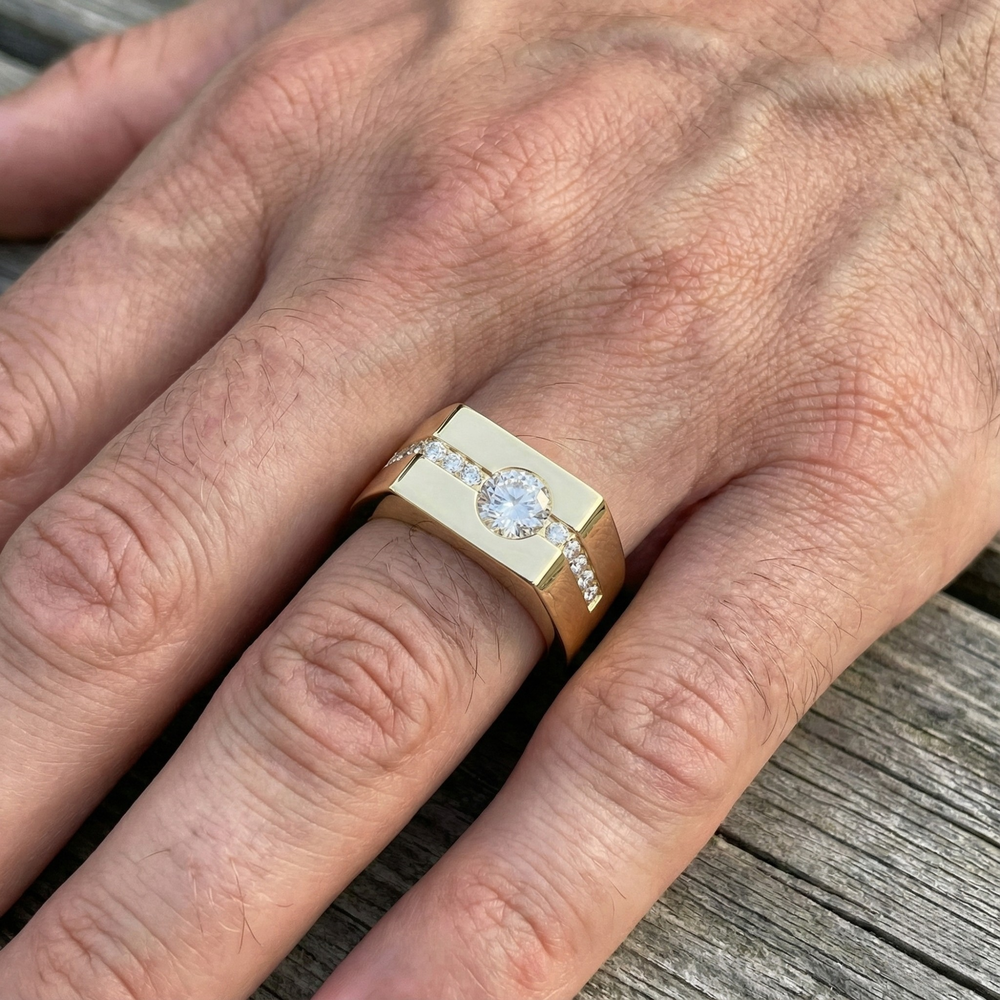 Choose The Dominus – a men’s diamond band in gold and platinum that merges strength, luxury, and sustainability.
