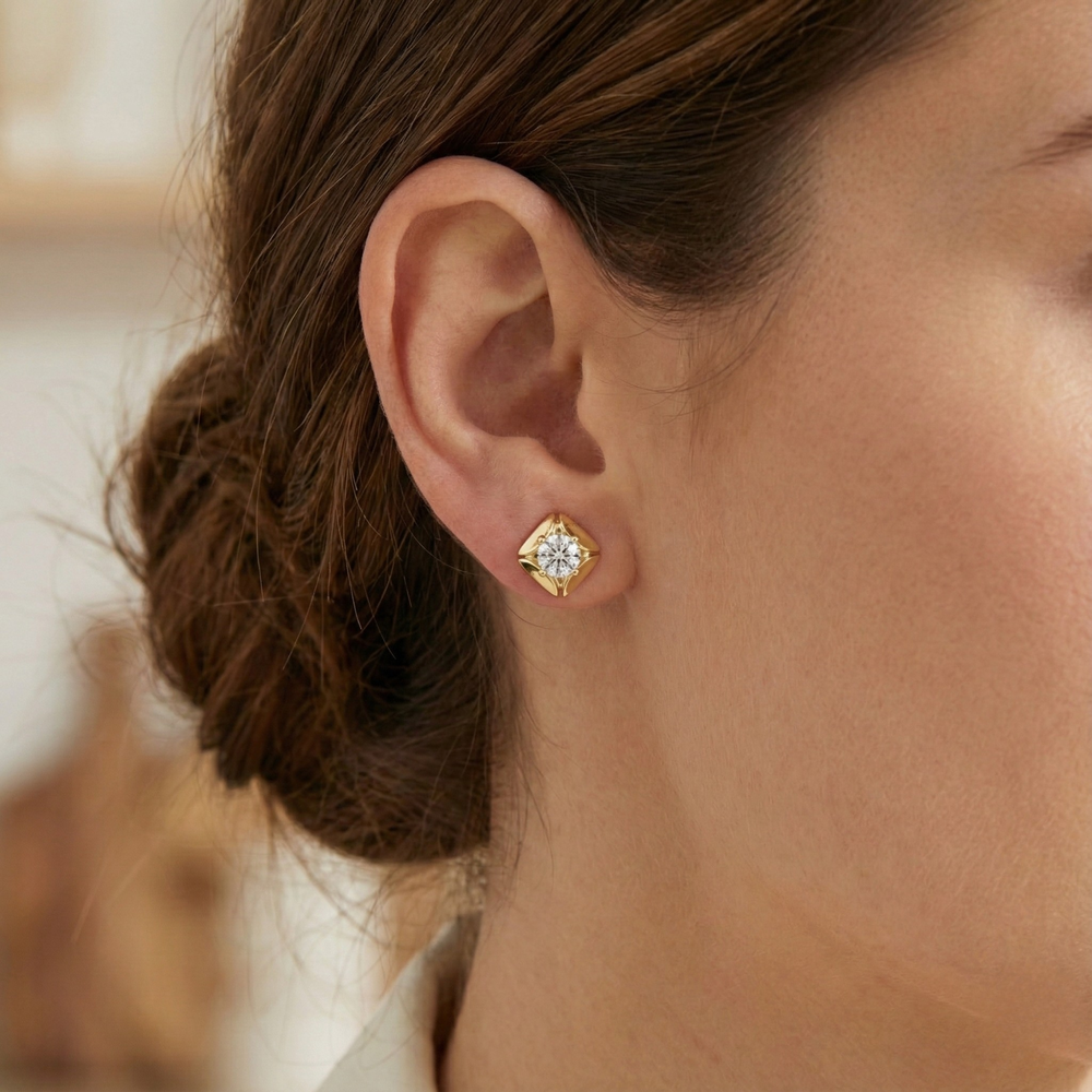 Available in solid 14K or 18K yellow, white, and rose gold, Valeska offers both push-back and screw-back options to suit your comfort and style. Perfect for those who appreciate understated luxury, these fine jewelry diamond studs bring timeless sophistication to any outfit.