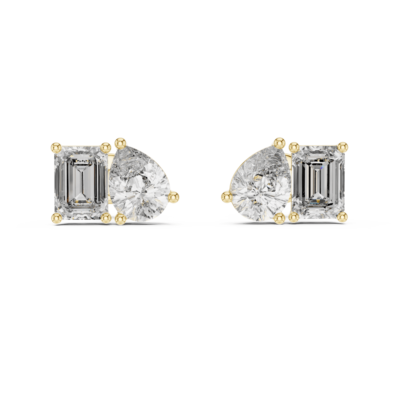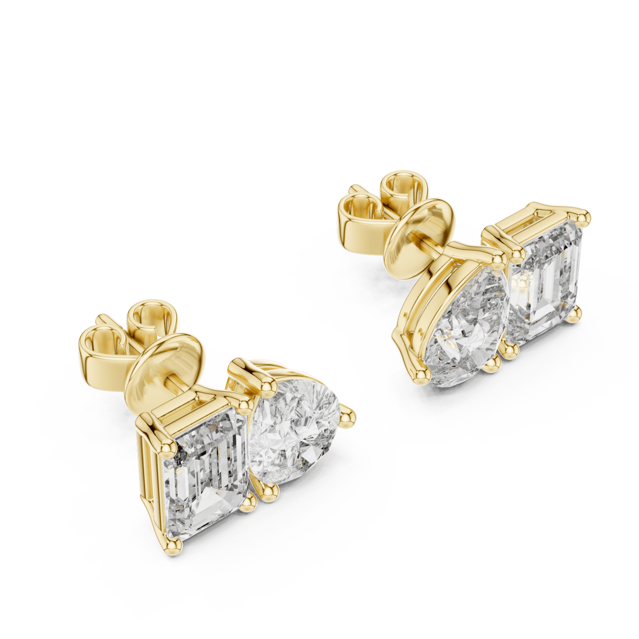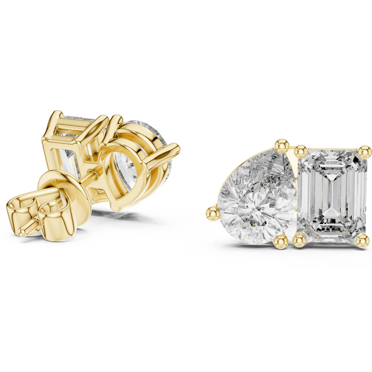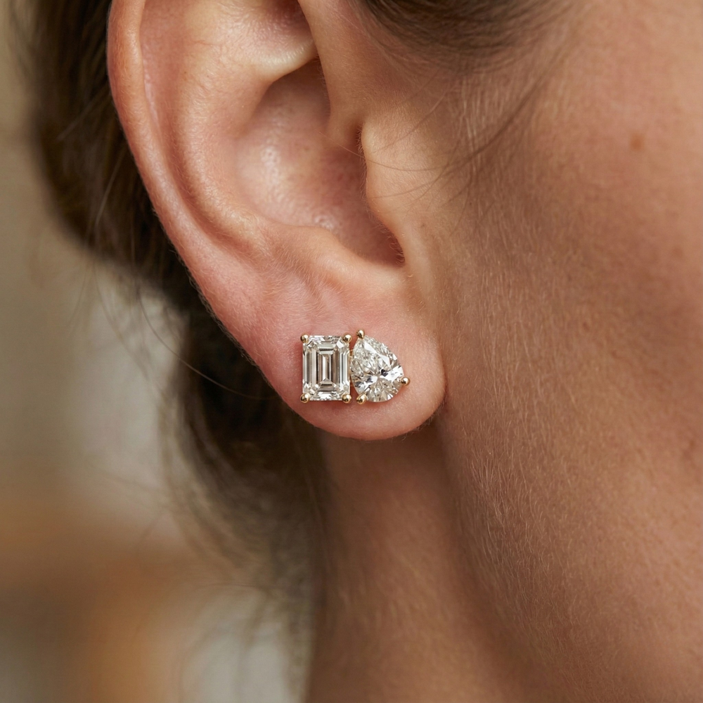 Introducing Zalmira by Jewel Nests — a stunning pair of Toi Et Moi Style Lab Grown Diamond Stud Earrings designed for modern minimalists. Featuring an elegant emerald-cut diamond paired with a pear-cut diamond, Zalmira captures the timeless symbolism of “you and me” in a fresh, contemporary form.